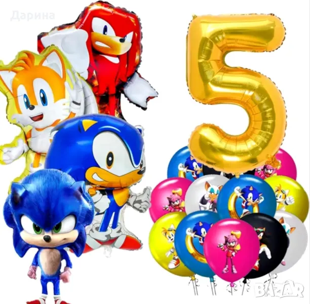 Парти сет балони Соник - 6бр. фолиеви балона, цифра 80см от 2 до 8г. - 25лв. /12.78€. Парти сет Соник от 17бр. балони - 40лв./20.45€. Сета включва: 1бр. Соник в червено 50/78см., 1бр. лисица 37/54см., 1бр. Соник в син цвят 46/65см., 1бр. Соник 45/67см., 12бр. латексови балони 30см. и 1бр. цифра от 2 до 7г. Латексови балони 30см к-т от 9бр. балони - 12лв./9.14€. Покривка 108/180см. - 9лв./4.60€. Банер ,,Happy Birthday" Соник - 15лв./7.67€. Латексови балони Том и Джери - комплект от 10бр. 30см. - 15лв./7.67€. Нови. За повече информация може да посетите и нашия сайт www.partykids.fun