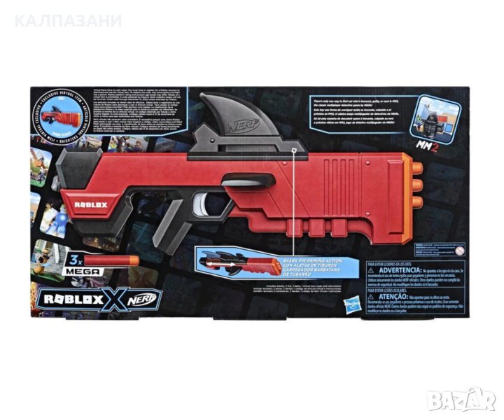 - Бластерът Nerf Roblox MM2: Shark Seeker, стрелящ със стрели, е вдъхновен от играта Roblox MM2;