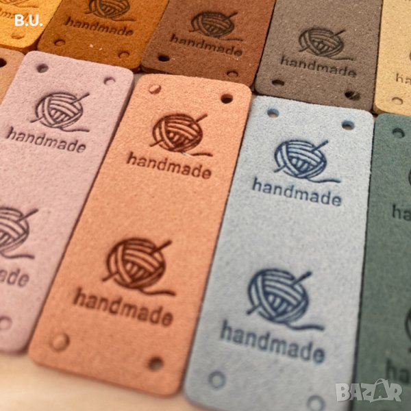 Етикетите са с надпис "Handmade" и кълбо прежда.