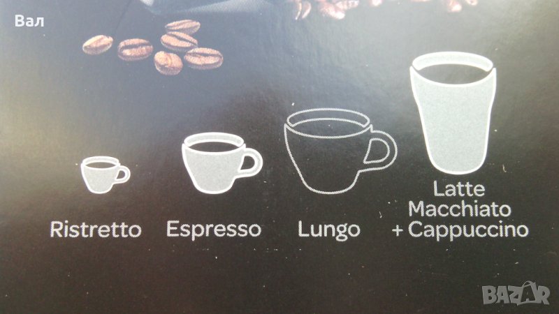 Има тръбичка за гореща вода и пара и така може да приготвяте чай, какао, горещ шоколад, кафе Ristretto,Espresso,Lungo,Latte Macchiato и Cappuccino