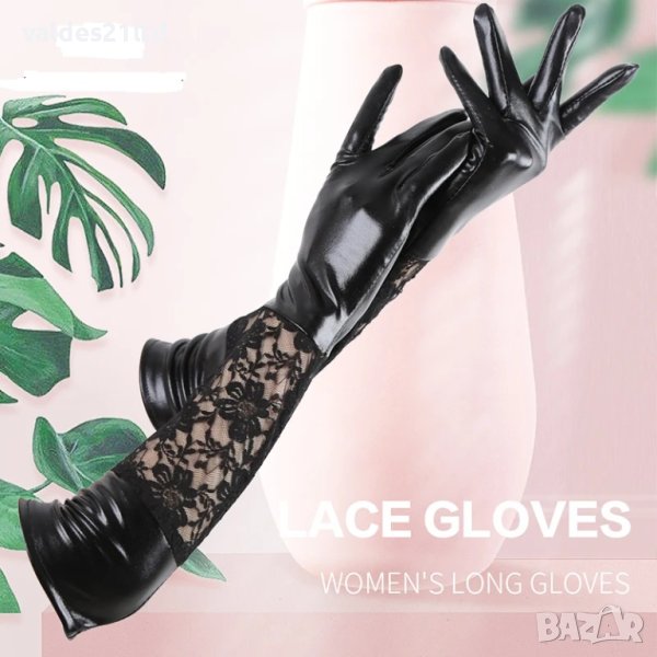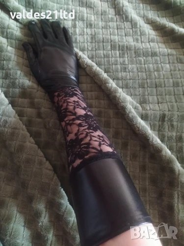 Еротичникожени ръкавици от черна ЕКО кожа и фина дантела.