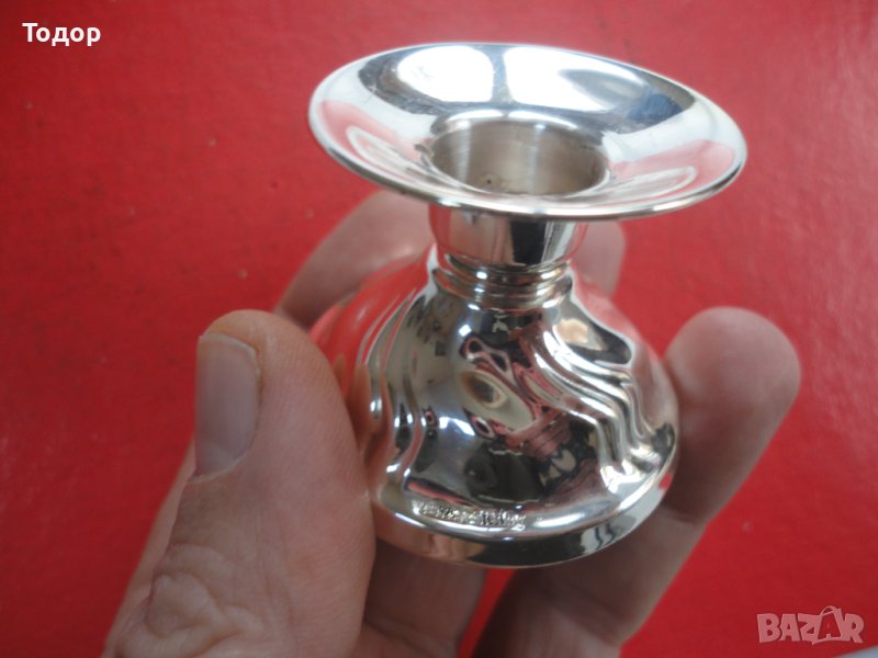 Диаметър на основата 5 см Височина 4 см Вътрешен диаметър на отвора за свещта 1,5 см Налични маркировки 925 проба Тегло 50,5 гр Здрав Отлично състояние