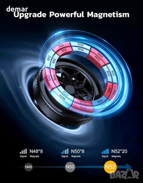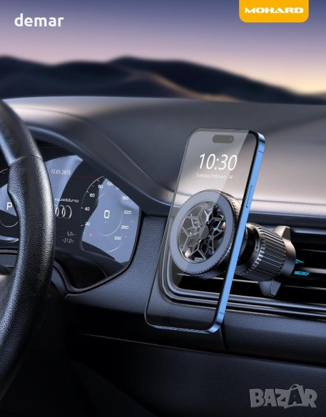 Изпитайте ненадмината стабилност с нашата магнитна стойка за телефон в кола, включваща 20 магнита N52 за ултраздраво захващане, което поддържа телефона ви сигурен при резки завои и внезапни спирания. Нашият уникален дизайн, подобен на гума, не само добавя стил, но и предлага отлично разсейване на топлината. Насладете се на работа с една ръка с гъвкава 360° сферична връзка за лесна навигация. Модернизираната кука се закрепва здраво към вентилационните отвори и разполага с регулируема дължина и фиксирани крила за повишена стабилност. Със сменяеми опорни скоби, той пасва на различни модели автомобили, което го прави универсален и стилен избор за всяко превозно средство.