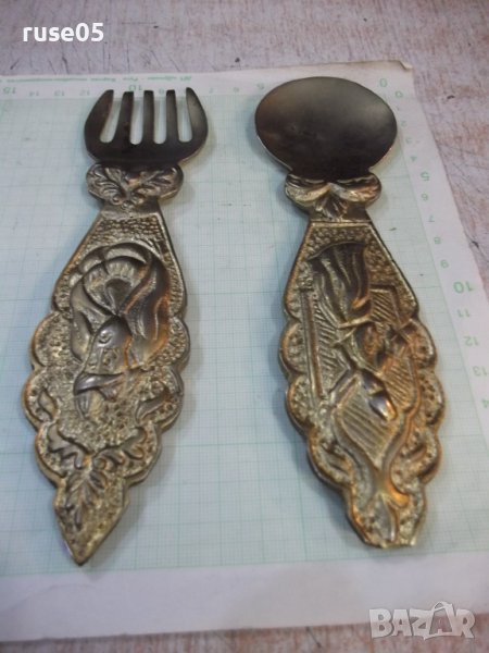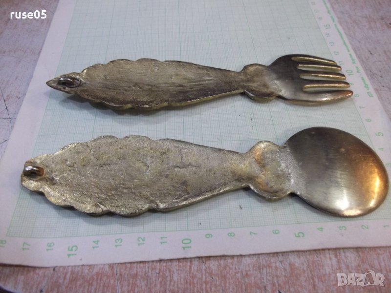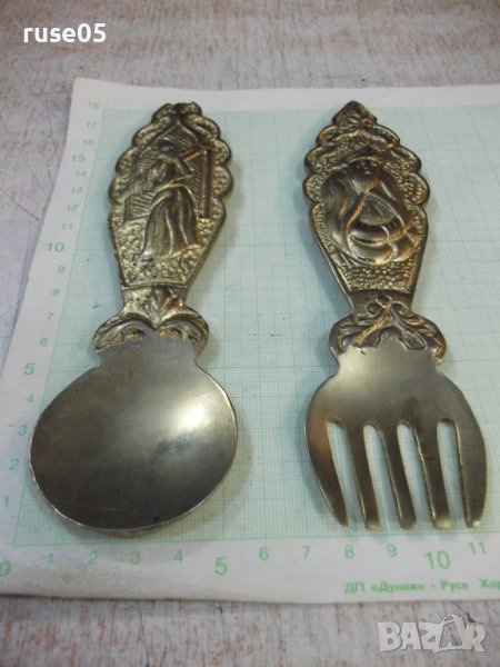Комплект лъжица и вилица от бронз с релефни фигури → Обява 43009365