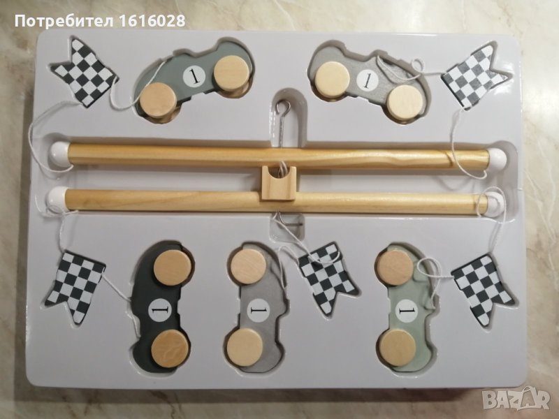 Промоция! Детска дървена въртележка с колички и знаменца. → Обява 43009649