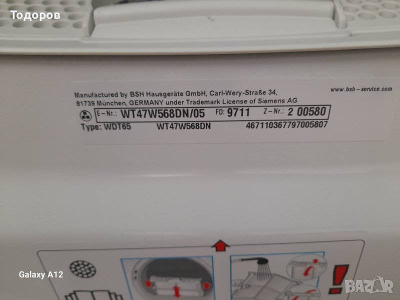 Сушилня с термопомпа Siemens IQ700 WT47W568DN/02 8кг A