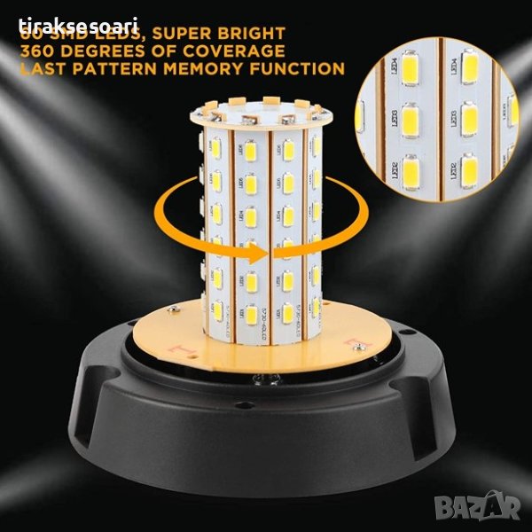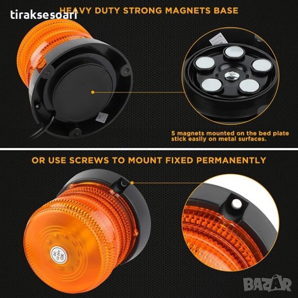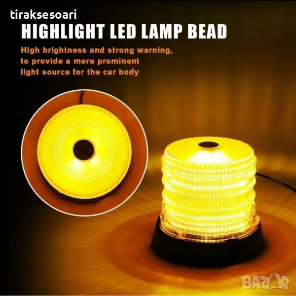 60 LED Лед Сигнална Лампа Аварийна Маяк Буркан 12V 24V С Mагнитно и Болтово Захващане