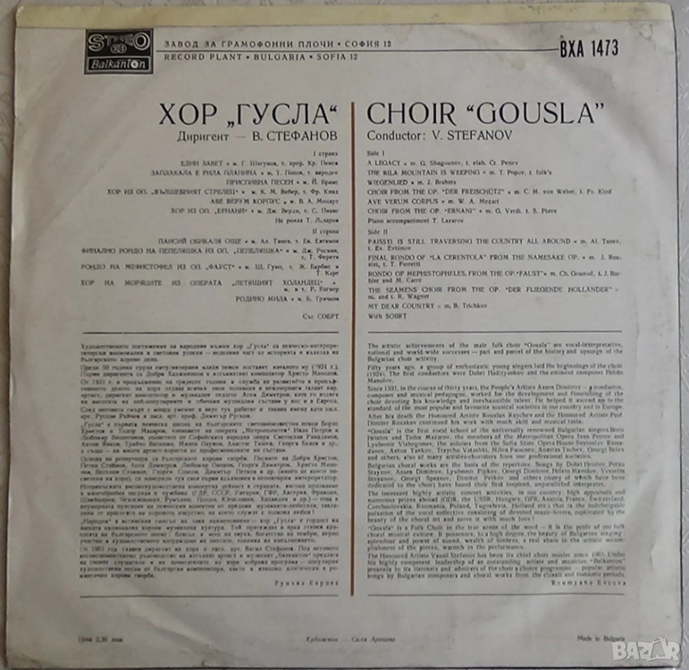 Хор Гусла – Хор Гусла, Балкантон ВХА 1473 в много добро състояние.