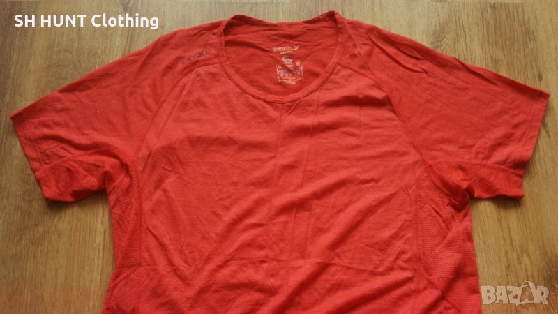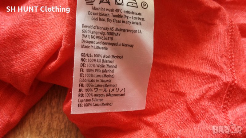 Марка: DEVOLD T-Shirt 100% Merino Wool - тениска 100% Мерино вълна L193-7 Размер: L на етикет е XL но е леко умалена - ширина под мишниците при нормално положение 53 см , разтяга се до 68 см , дължина 86 см.