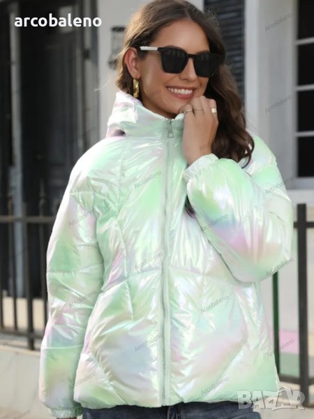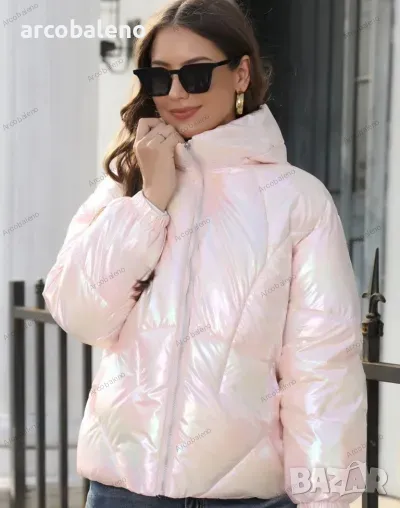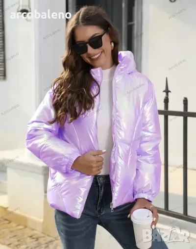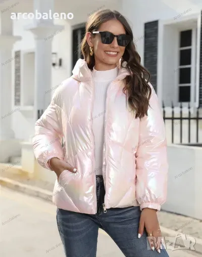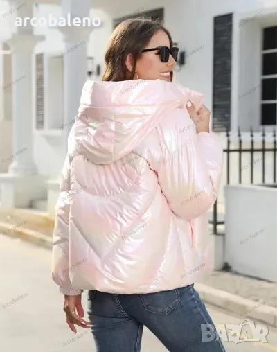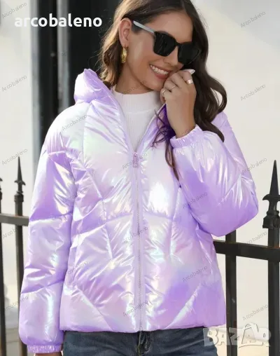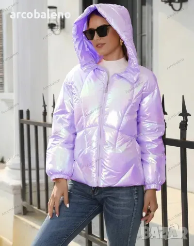 Лъскаво зимно дамско яке с качулка и семпъл дизайн, 4цвята