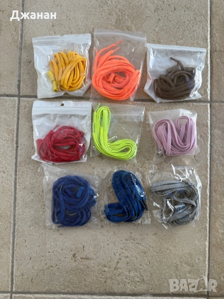 Еластични връзки за обувки/ маратонки с метална закопчалка. Много лесни за нанизване и практични при употреба. Цветове - сиви, сини, розови, оранжеви, жълти, електриково зелени, червени, кафяви.