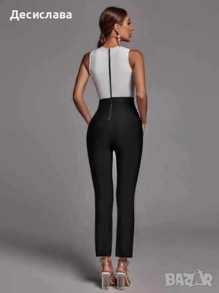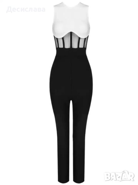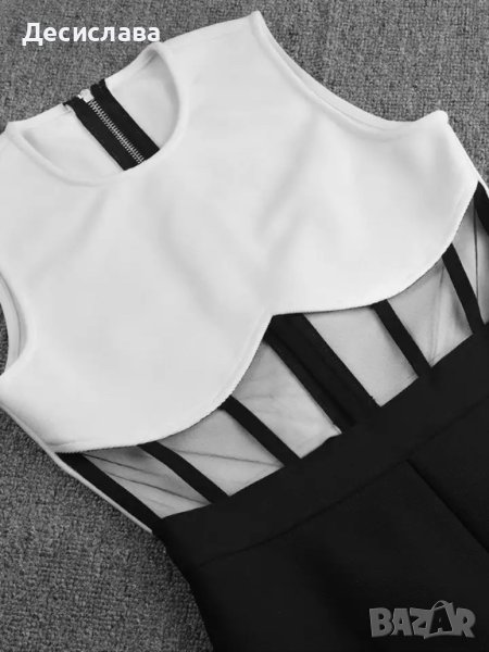 Секси гащеризон с мрежа в областта на талията. Изключително стилен в класическо черно и бяло. ХС размер.