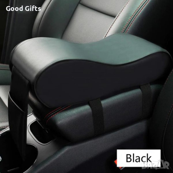 Универсална подложка за подлакътник от еко кожа с калъф за мобилен телефон за автомобил- Черен