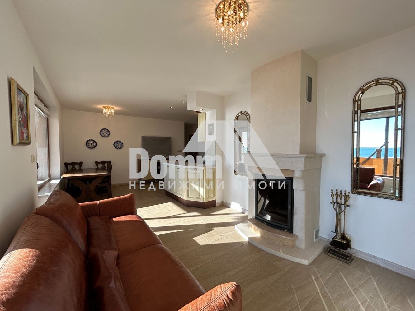 На площ от 130 кв.м. са разположени: просторна и слънчева всекидневна с кухненска част, камина във всекидневната, две спални, баня с тоалетна и много голяма тераса 32 кв.м.,от която се разкрива красива гледка към морето и плажната алея.