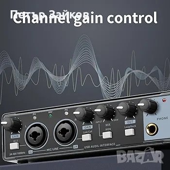 електрическа китара, бас и т.н., включително +48V кондензаторен микрофон фантомно захранване, аудио интерфейс MB28 има висок клас 24-bit/192kHz студиен преобразувател за ясно качество на звука.