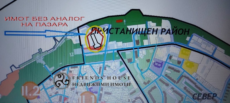 ЕКСКЛУЗИВ. НАМАЛЕНА ЦЕНА ! FRIENDS HOUSE предлага уникален парцел за ниско застрояване на 50м от река Дунав, гр.Силистра. По Общия устройствен план на града, с решение от 30 Март, 2023г районът в който попада имота е отреден за ниско застрояване до 3 етажа и параметри - Плътност на застрояване - 60%, Кинт - 1.2, височина - 10м. Имотът се намира в непосредствена близост до ресторант Сладост и подходът е откъм улица Христо Смирненски и улица Пристанищна . Имотът разполага със собствени партиди за ток, вода и е присъединен към канализация. В парцела има съществуваща едноетажна жилищна сграда със ЗП 74 кв.м, както и 3 стопански постройки. Конфигурацията и локацията на имота дават възможност за многофункционалност в изборът на планиране, ползване и застрояване. Общата площ на имота по нот.акт и по скица е 1 748 кв.м. Огледи по всяко време. Ключ в офиса. Ref. 257