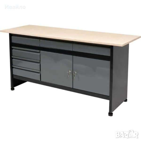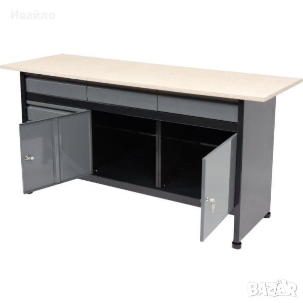 Работна маса с шкаф за инструменти, позволяваща създаването на удобно работно място и безопасно съхранение на инструментите.