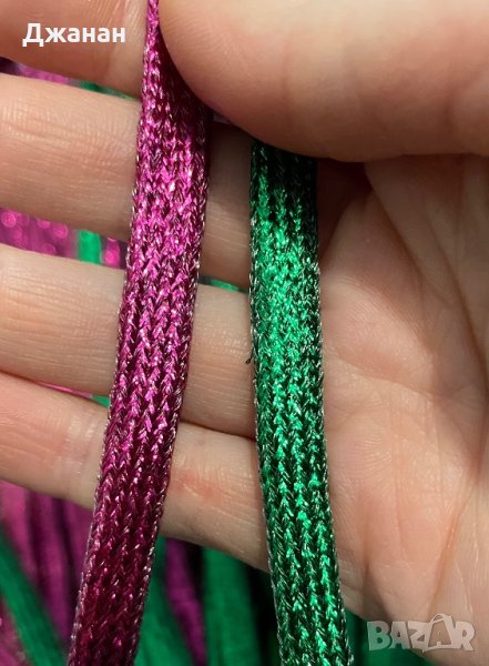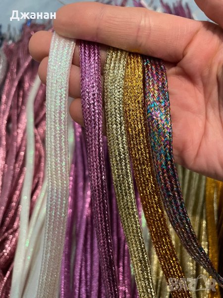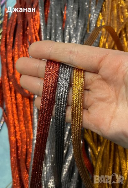 Блестящи връзки за обувки/маратонки с дължина 110см. Цветове - бели, черни, сини, розови, лилави, жълти, златни, сребърни,многоцветни, червени, кафяви и шампанско. На една снимка съм събрала златни, жълти, циклама, зелени и шампанско, за до видите разликата. При покупка на 5 чифта - 18лв.