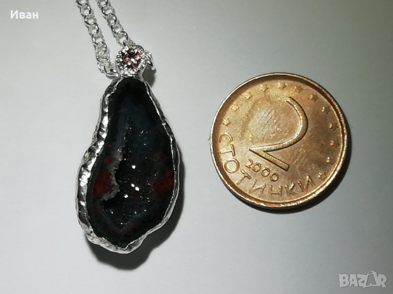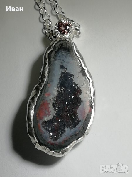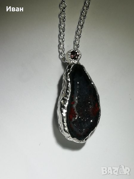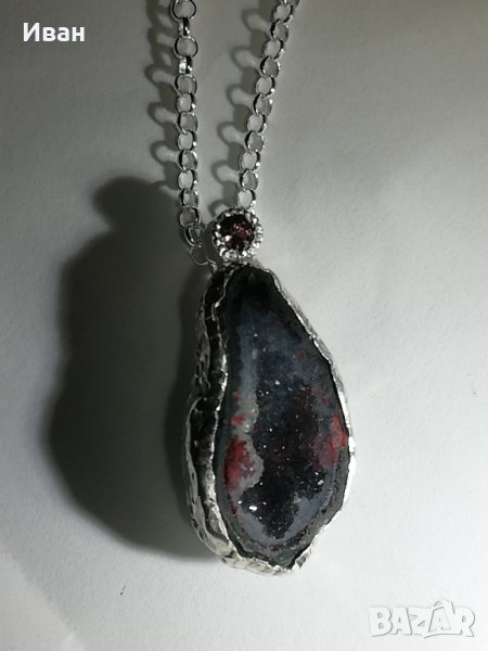 Сребърно колие с геода и сапфир → Обява 43029617