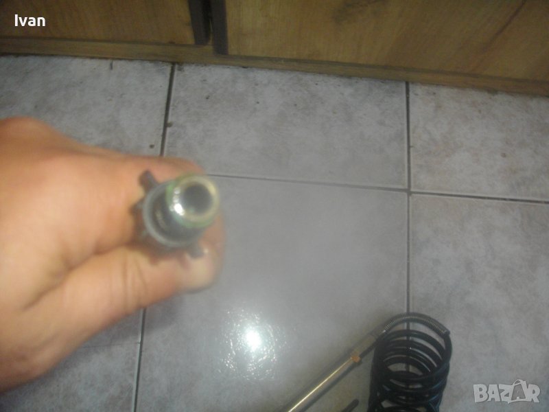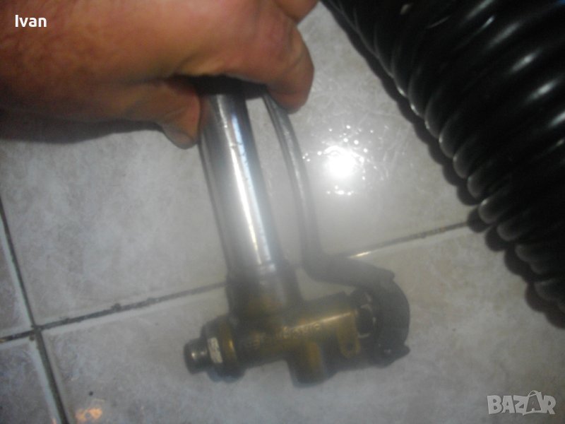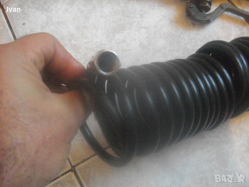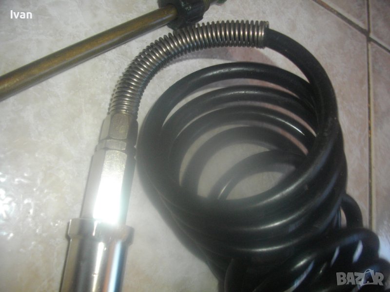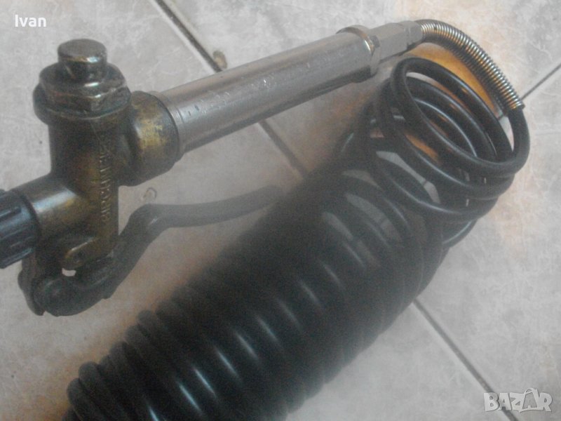 ОПИСАНИЕ на маркуч с рамо пръскачка. Ползван, със запазен външен вид и отлично работно състояние. Шмейцарски оригинален, маркиран, професионален, за професионални пръскачки с различни разтвори. Марка BIRCHMESIER - Swiss Made - швейцарско качество. Цена на маркуча с пръскащото рамо - 199 лв. Маркуча е спираловиден с дължина 5 м. Рамото е с дължина 72 см. Инокс неръждавейка дръжка ръкохватка, бронзова глава Swiss Made , бронзова тръба рамо с дюзов накрайник отпред. Голям, масивен, алуминиев удобен спусък 15 см. Метална пружина за подсилване на маркуча при захвата към дръжката ръкохватка. Оригинален адаптерен щуцер на захвата дръжка-маркуч. Цената от 199 лв за пръскачката е твърда и без коментар.