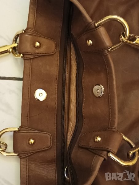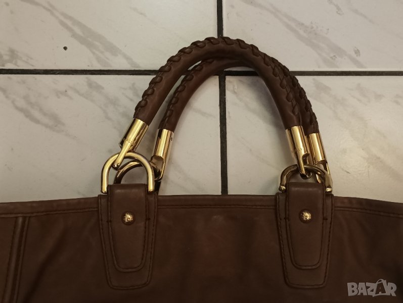Оригинална дамска чанта BALLY, Швейцария. Нова, естествена кожа, маркировки на повечето метални елементи, цвят кафево, бежаво. Липсва презрамката, други забележки няма.