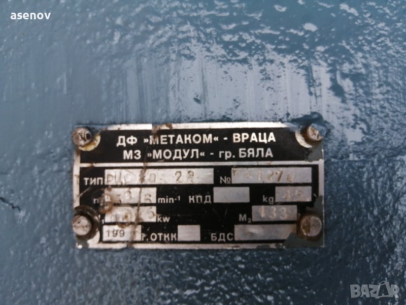 Продавам редуктор с предавателно число 1 :28, тегло 45 кг, входяща ос 20мм, изходяща ос 45 мм