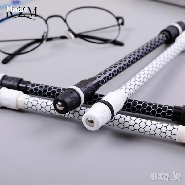 • Пенспининг химикал е едно от най-новите забавления за учениците и всички млади и стари деца. Освен, че може да се използва за писане химикала е предназначен за изпълнение на трикове с въртене. • Представлява химикал от пластмаса, силкон и метални части и е идеално балансиран. Тялото на химикала е удобно за захващане и въртене. • Тип: Въртяща се писалка • Материал: Пластмаса с нехлъзгащо покритие, Метал. *Различно според модела*• Дължина: *различно според модела*• Чисто нов и високо качество. • Подходящ както за професионалисти, така и за начинаещи. • Двете страни на писалката имат твърди и тежки метални топки и уникална буферна пружина, които значително увеличават теглото, баланса и стабилността и сърцевината на химикалката е устойчива на течове. *За баланс различно според модела*• И двете страни имат еластична мека гума, която може да предотврати падането и счупването на стъпалото. *Различно според модела*• Повече гъвкавост на вашите пръсти и по-висок коефициент на интелигентност с тази въртяща се писалка. • Не си мислете, че е просто играчка! Наистина може да пише като всяка друга химикалка.