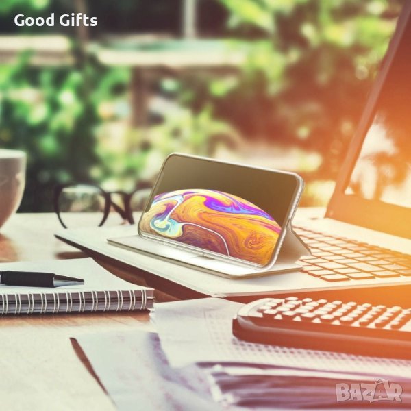 Цялостна защита за телефона. Калъфът е с възможност да мине в удобна позиция за мултимедия. Джобче за кредитни карти и документи от вътрешната страна на предния капак.