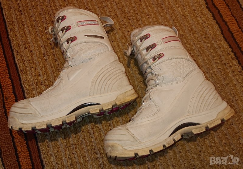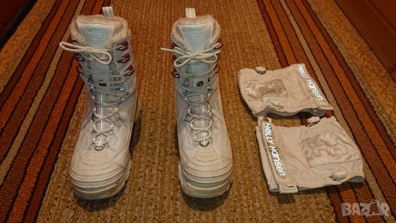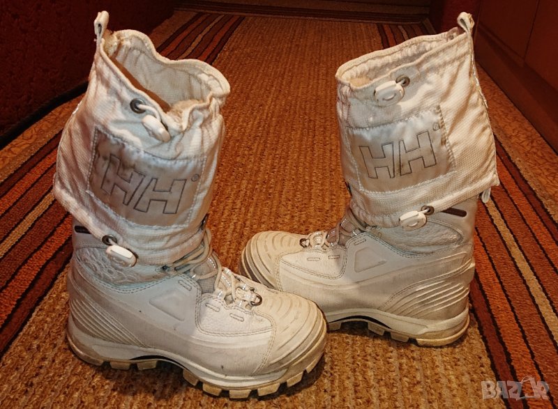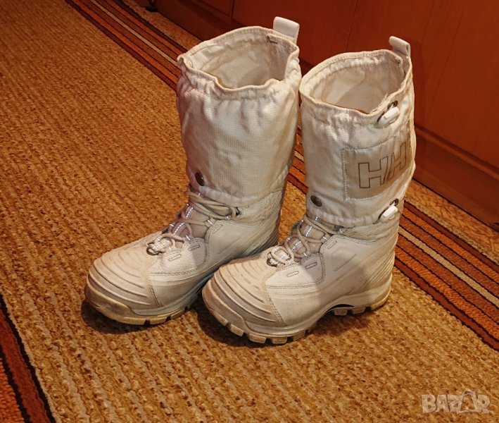 Ботушите са много висок клас на марката HH, без забележки. По гетите има следи от носене (зацапване на места). Изолация Thermo lite 600, Hellytech Xp waterproof, подметка Helly grip. На самите ботуши има копчета тик-так отпред и отзад с които се прикрепят гетите (с велкро лепки) при нужда.