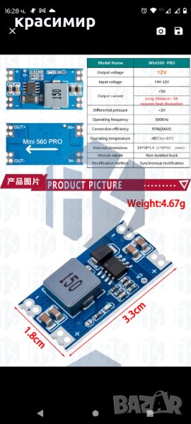 5A DC-DC MINI560 Понижаващ стабилизитор захранващ модул с напрежение Изход 12V, снимка 1 - Друга електроника - 43035301  5A DC-DC MINI560 Понижаващ стабилизитор захранващ модул с напрежение Изход 12V, снимка 2 - Друга електроника - 43035301  5A DC-DC MINI560 Понижаващ стабилизитор захранващ модул с напрежение Изход 12V, снимка 3 - Друга електроника - 43035301 1/3