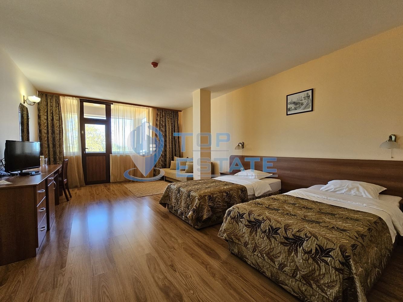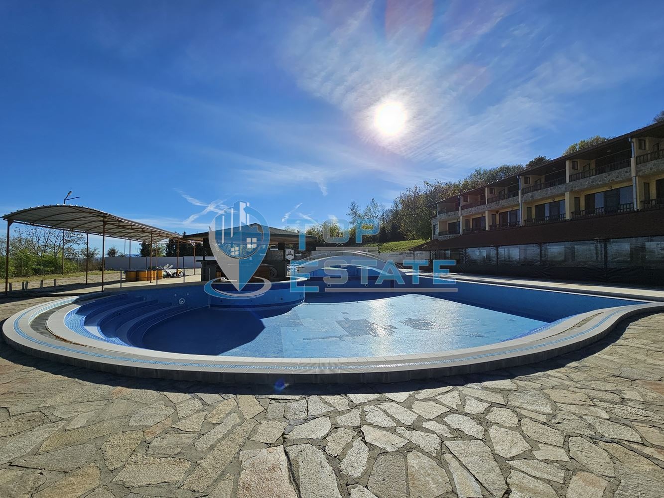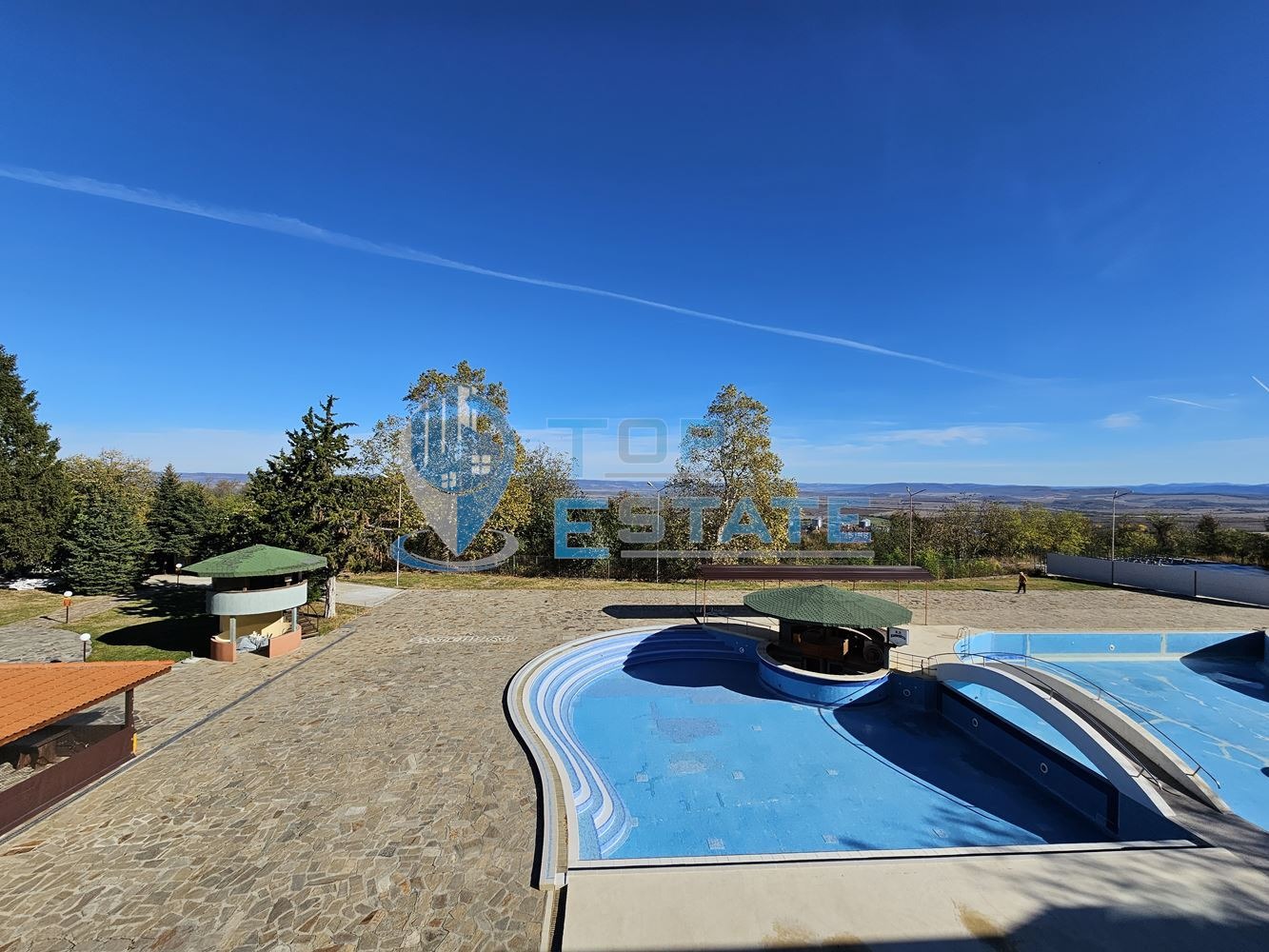Топ Естейт Недвижими имоти ви предлага хотел с три басейна и прекрасна панорама над гр. Лясковец, област Велико Търново. Имотът се намира в на няколко километра от областния град Велико Търново, както и от архитектурния резерват Арбанаси, а също така главния път София-Варна преминава покрай града. Сградата е със разгъната застроена площ от 2441 кв., като хотелската част се състои от 20 стаи с площ между 40 и 50 кв.м, както и два апартамента. Първият етаж се състои от фоайе, рецепция, офис, конферентна зала с 40 места, десет стаи и един апартамент. Вторият етаж се състои от десет стаи, част от които са с три легла и са на две нива, както и един апартамент. На същият етаж е разположен и апартамент с площ от 450 кв.м, който се състои от четири спални, просторен хол (80 кв.м) и пет санитарни помещения. Хотелската част е оборудвана с всичко необходимо за приятен престой на гостите - легла, дивани, гардероби, телевизори, климатици и др. Изложението на имота е панорамно с изглед към града и басейна, като всяка стая разполага със собствена тераса. На приземното ниво ориентирано към басейна е разположен ресторант с обща площ от 360 кв.м, заедно с прилежащите му кухня, обслужващи помещения и две тоалетни, като капацитетът на ресторанта е 120 места, а през лятото отвън са налични още 60 места. Кухнята е напълно оборудвана с фурни за пица, фритюрници, скара, електрически и газови котлони, машини за лед, хладилници, фризери. Отоплението е решено чрез три газови котела с мощност 200 kW, два бойлера (1000 л. и 500 л.), както и климатична сплит система за отопление и охлаждане с 16 вътрешни тела, като сградата е свързна с газопреносната мрежа на града. Имотът разполага с асфалтиран паркинг с площ от 600 кв.м за 30 автомобила със седем покрити паркоместа, както и детска и спортна площадки. Басейните са три, с обща площ от 1000 кв.м.( 1 детски и 2 големи с обща кубатура 1000 куб.м.), както и съблекални с душове и тоалетни за мъже и жени (60 кв.м.). Парцелът е с площ от 16 000 кв.м, като 2000 кв.м са зелена площ, изградена e фотоволтаична централа за собствени нужди с мощност от 50 кW, а също така има и одобрен проект за изграждане на изба и спа център на площ 1000 кв.м. в границите на имота. Достъпа е целогодишен по асфалтов път, а пред имота е обособен паркинг за гости. Поради страхотното си местоположение, разработения бизнес и прекрасното качество на строителство, предложеният имот е изгодна инвестиция. Номер на оферта 1860. We speak English.