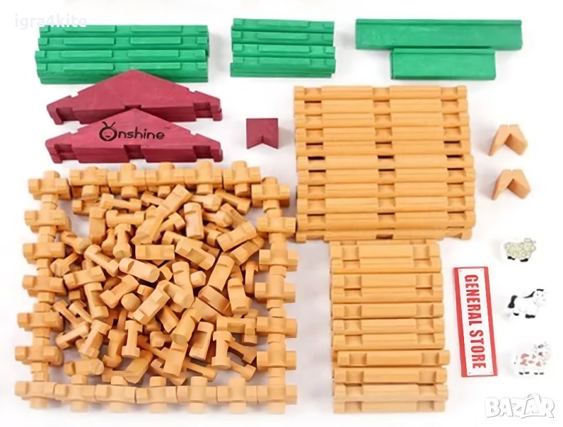 Намаленията продължават! ТОП Коледен подарък. Дървен конструктор ферма с магазин 170 ч.