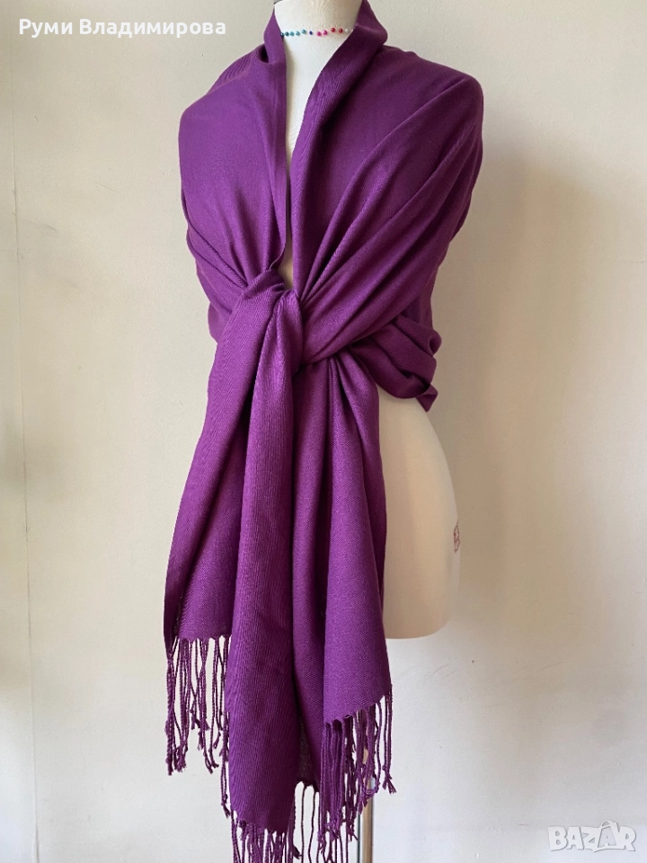 Лилав шал от 100 % кашмир, коприна/ различни видове → Обява 43037801