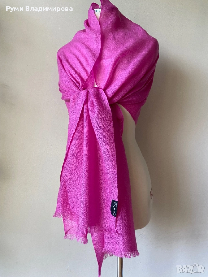 Цикламено розов шал, Fraas, от 100 % фина вълна, тънка, дюс материя, тесен птавоъгълник размер 53 Х 184 см, нов. Доставка с Еконт.