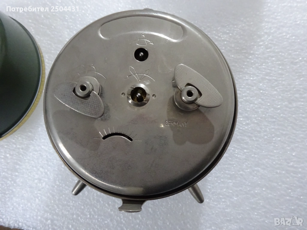 работи точно, алармата звъни в три тоналности, започва приглушено с единичен звук, който преминава в постоянен звън, диаметър 9,4 см.