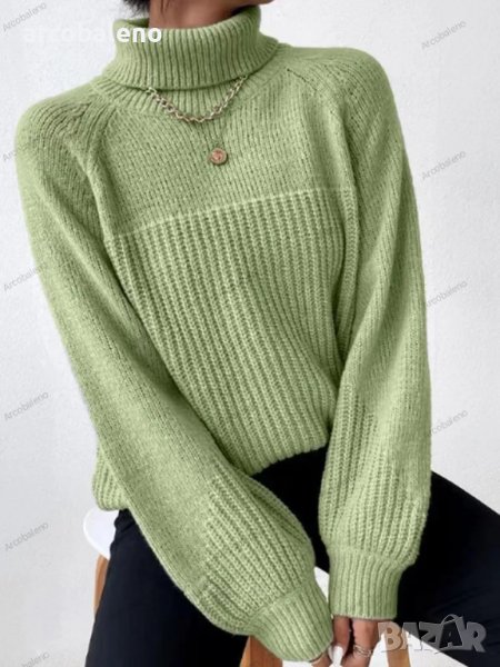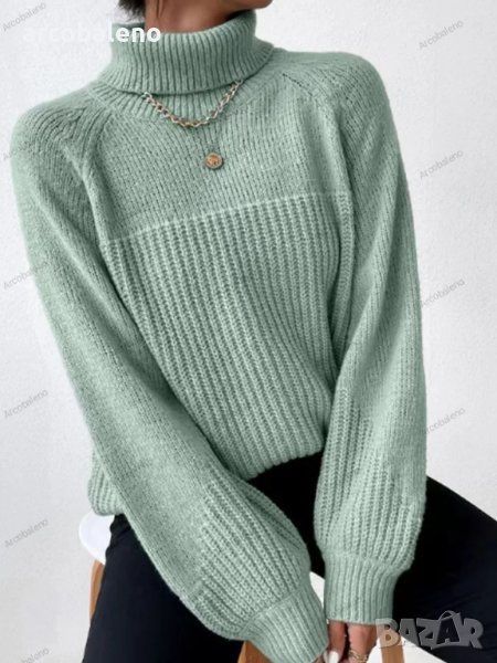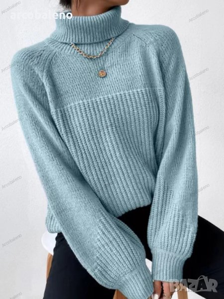Дамски ежедневен пуловер с реглан ръкав и поло яка, 6цвята
