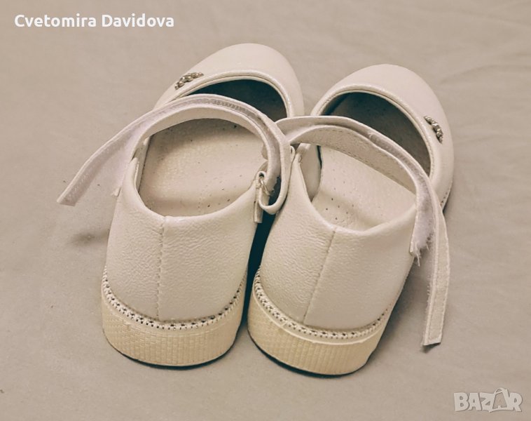 Детски обувки тип балеринки за момичета. Кожени, цветът им е бял. Номер 33