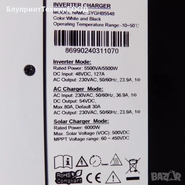 Suyeego 5500W 48V UPS/Хибриден MPPT соларен инвертор с Wi-Fi