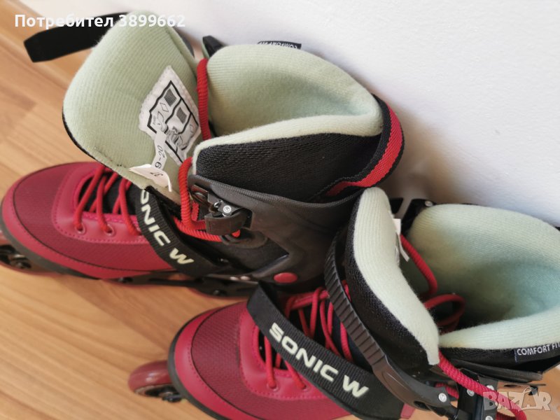 Ролерите са чисто нови, обличани само за проба, не са карани навън. Закупени са от Sport Depot - https://www.sportdepot.bg/index.php/product/stuf_roleri_sonic_20_woman-N_1003322-9243-basic.html?i=1993