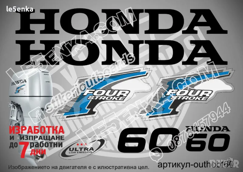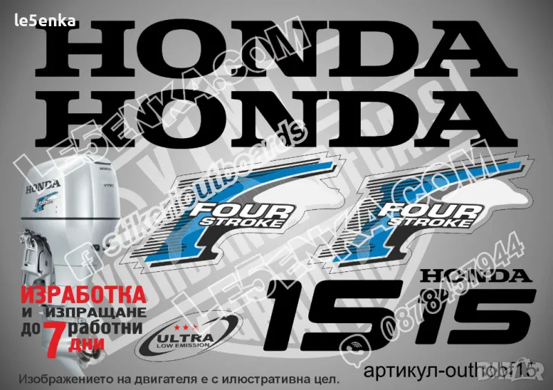 HONDA 75 hp Хонда извънбордови двигател стикери надписи лодка яхта → Обява 43044312
