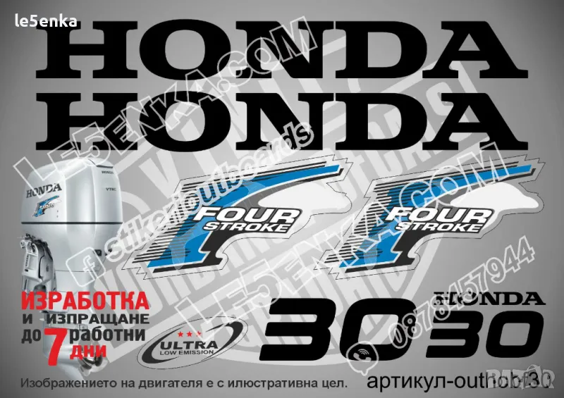 HONDA 90 hp Хонда извънбордови двигател стикери надписи лодка яхта → Обява 43044330