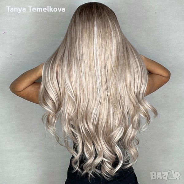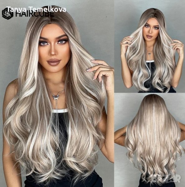 Пепеляво руса перука без бретон на леки вълни → Обява 43045406