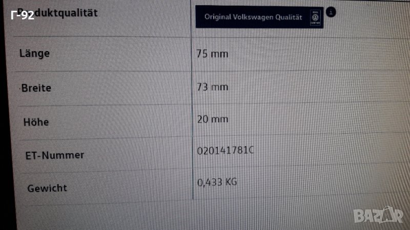 020141781C**NEU**VAG**БАЛАНСИРАЩА ТЕЖЕСТ ЗА СЪЕДИНИТЕЛЯ**TILGERGEWICHT**