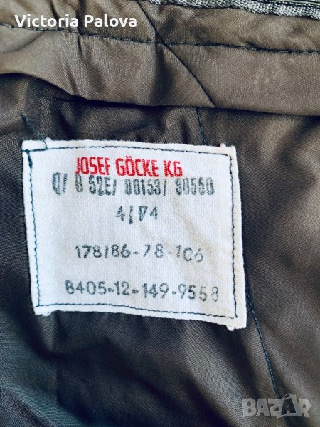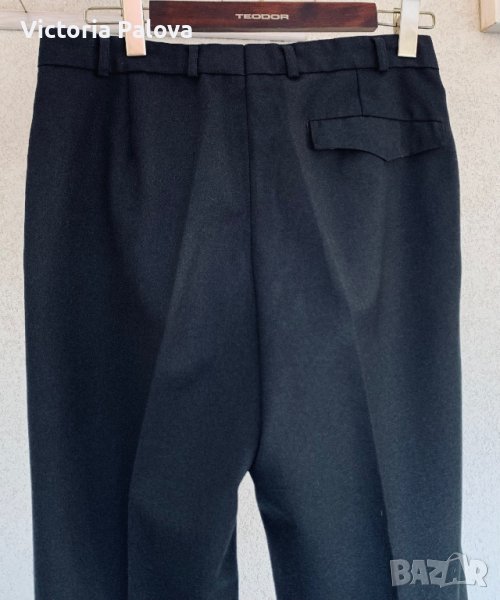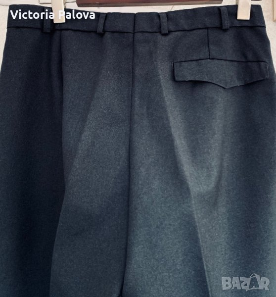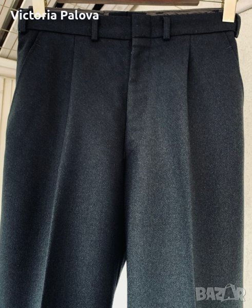 Уникален панталон, vintage, такава материя вече я няма никъде - плътна тежка немска вълна, водонепроницаема. Панталонът е много красив и структуриран, красива кройка и графитен цвят. Талия - 42см, дължина - 104см, отвътре - 77см, широчината на крачола - 34см, долу - 22см. Може да се ползва и от жени, тъй като кройката е универсална.