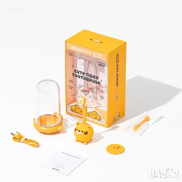 Детската електрическа четка за зъби iNszkoos е предназначена да насърчава малките деца да мият зъбите си редовно с привлекателната си тигрова форма. Подходяща е за деца над 2 години и се предлага с два вида глави за четка: глава за почистване на зъби за дълбоко почистване и глава за грижа за устата за нежна грижа, и двете изработени от подходящи за храна, меки материали, безопасни за чувствителни венци. Четката за зъби разполага с три лесни за използване режима (нежен, чист и бял) с едно натискане на бутон. Водоустойчив е IPX7, позволяващ използване под душа и има удобна, безопасна силиконова дръжка. Комплектът включва окачена основа, прахоустойчива чаша с двойно предназначение, две глави за четки, кабел за зареждане Type-C и ръководство за потребителя, всичко това опаковано в красива подаръчна кутия, което го прави идеален подарък за поводи като Коледа или рождени дни. Четката за зъби е удобна за употреба у дома или при пътуване, насърчавайки добрите навици за миене на зъбите при децата.