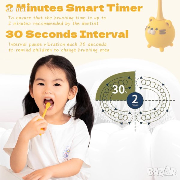 iNszkoos акумулаторна детска електрическа четка за зъби с чаша
