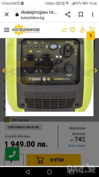Цена при колеги 1949лв https://www.koledzhikov.bg/product/invertoren-generator-za-tok-pramac-p3000i/