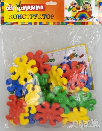 Конструктор 500г елементи с различни цветове в PVC плик. Комплектът дава възможност за изграждане на обемни фигури, което развива въображението и сръчността на децата. Подходящ за деца от детска градина, предучилищна и началните класове на училищно образование. Материал: пластмаса. Тегло: 500г.