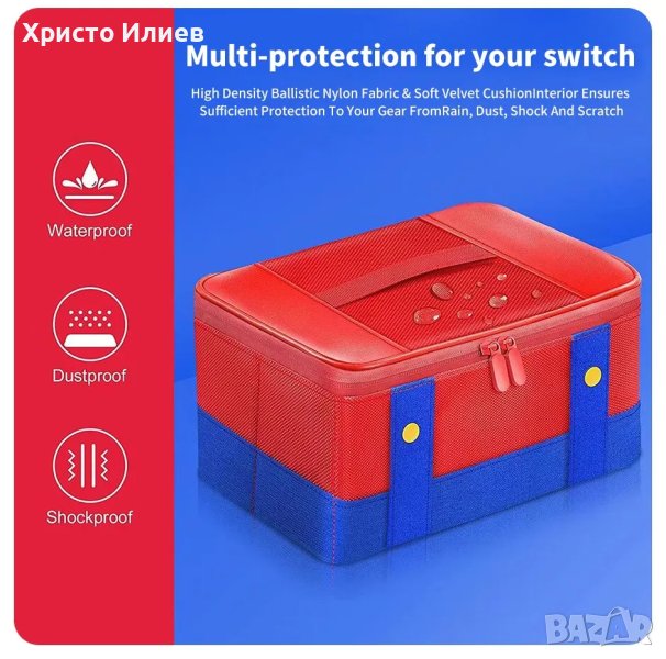 Този продукт е висококачествен, водоустойчив, прахоустойчив и удароустойчив калъф за конзолата Nintendo Switch NS. Той е идеален за съхранение и защита на вашите игри и аксесоари.
