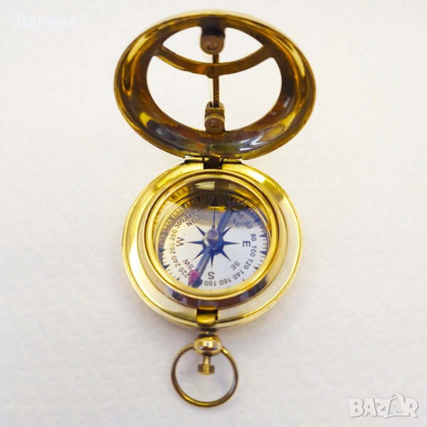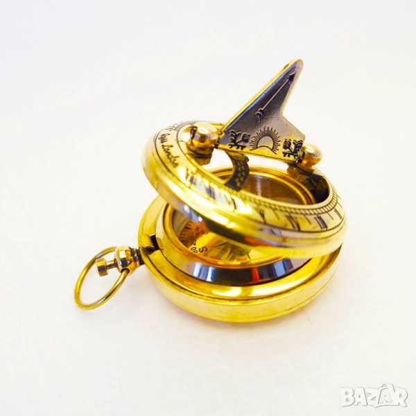 Този изключителен компас със слънчев часовник впечатлява с дизайн, напомнящ старите джобни часовници, включително механизма на заключване. С диаметър 5 см и изработен от масивен бронз, той съчетава издръжливост, практичност и исторически чар. Всеки детайл е внимателно обмислен, за да превърне компаса в стилен аксесоар и уникален сувенир.